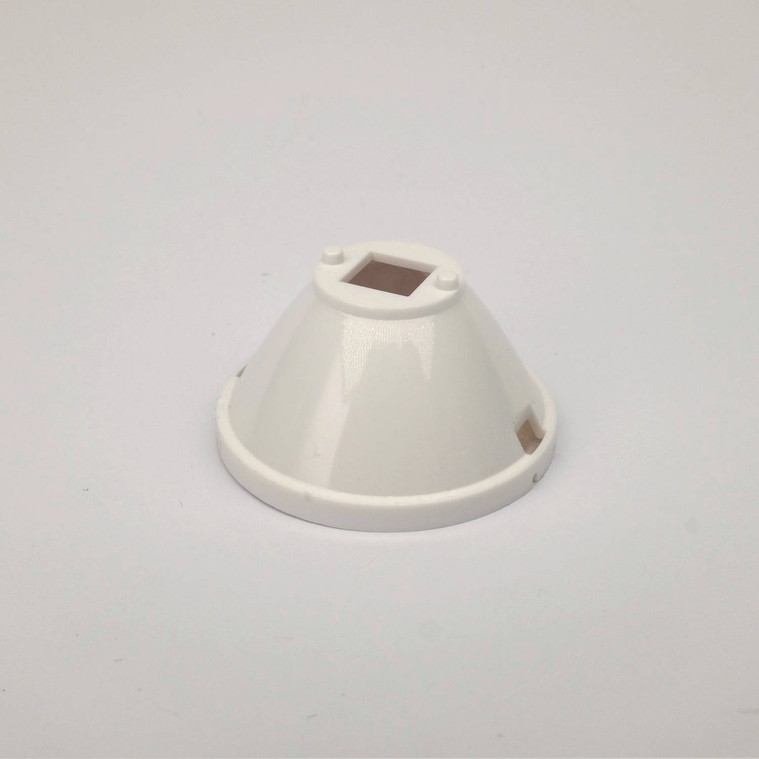 Eine kompakte Einzellinse für LEDs bis Größe 7070, mit einem Abstrahlwinkel von ca. 10°Der Abstrahlwinkel ist abhängig von der verwendeten LED oder dem LED-Modul.