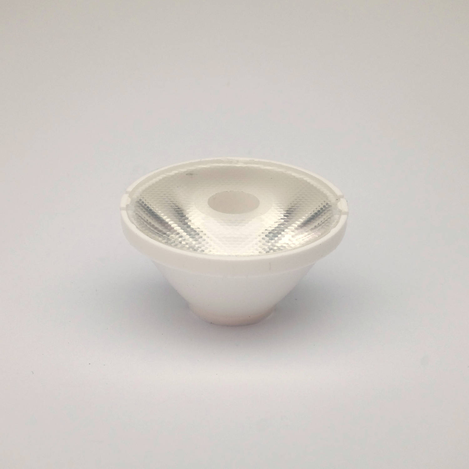 Eine kompakte Einzellinse für LEDs bis Größe 7070, mit einem Abstrahlwinkel von ca. 20°